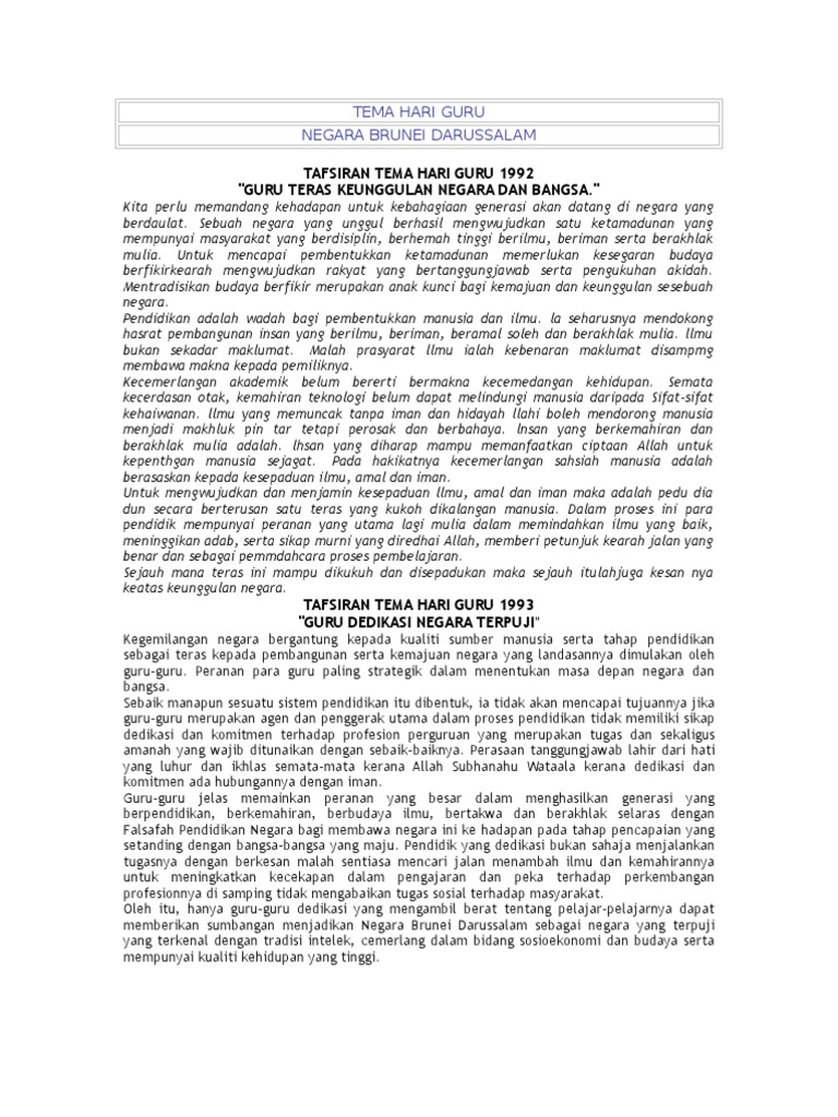 Bahan Tema Hari Guru Brunei 1992 1999 Pelbagai Artikel Tentang Hari Guru Pdf